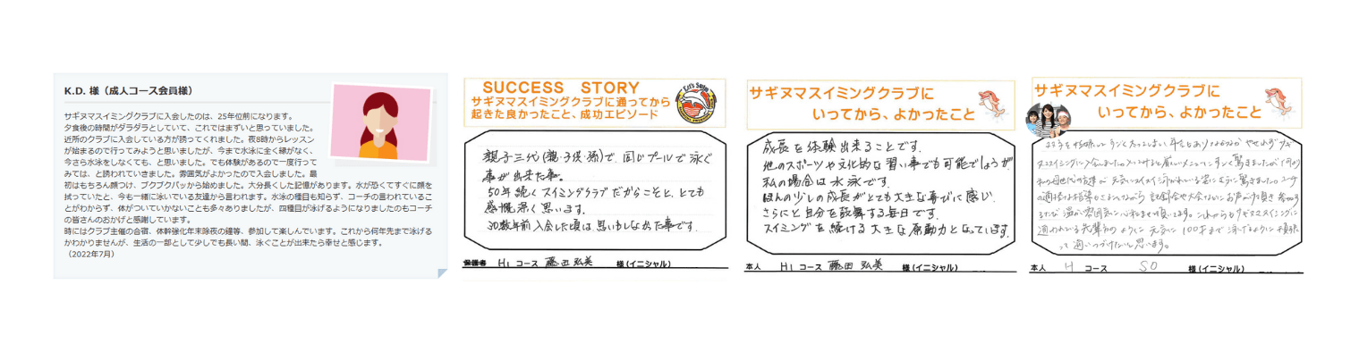 大会やクラブ内の記録会など、多様なイベントがあります。更に、水泳以外にもマラソン、散歩、もちつきなど、幅広いイベントで新たな仲間や発見が広がります。